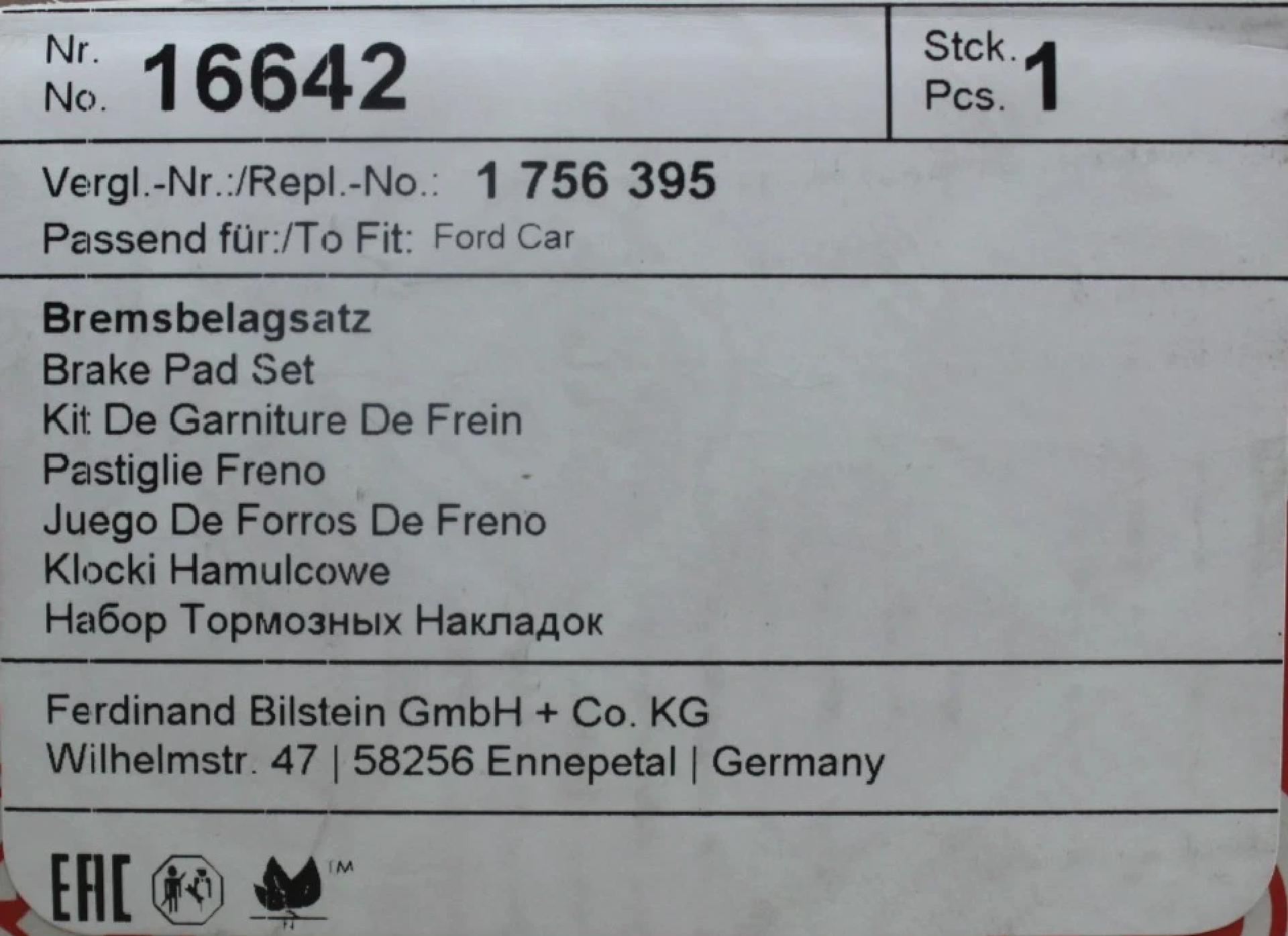 Bremsbeläge vorne         1916 756